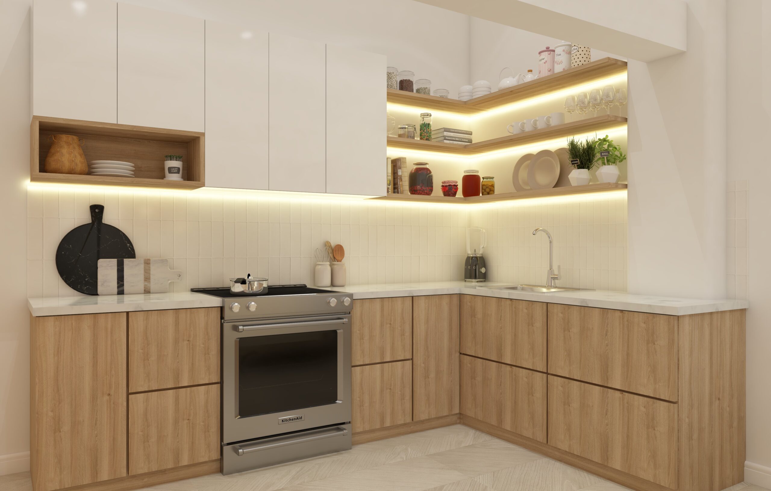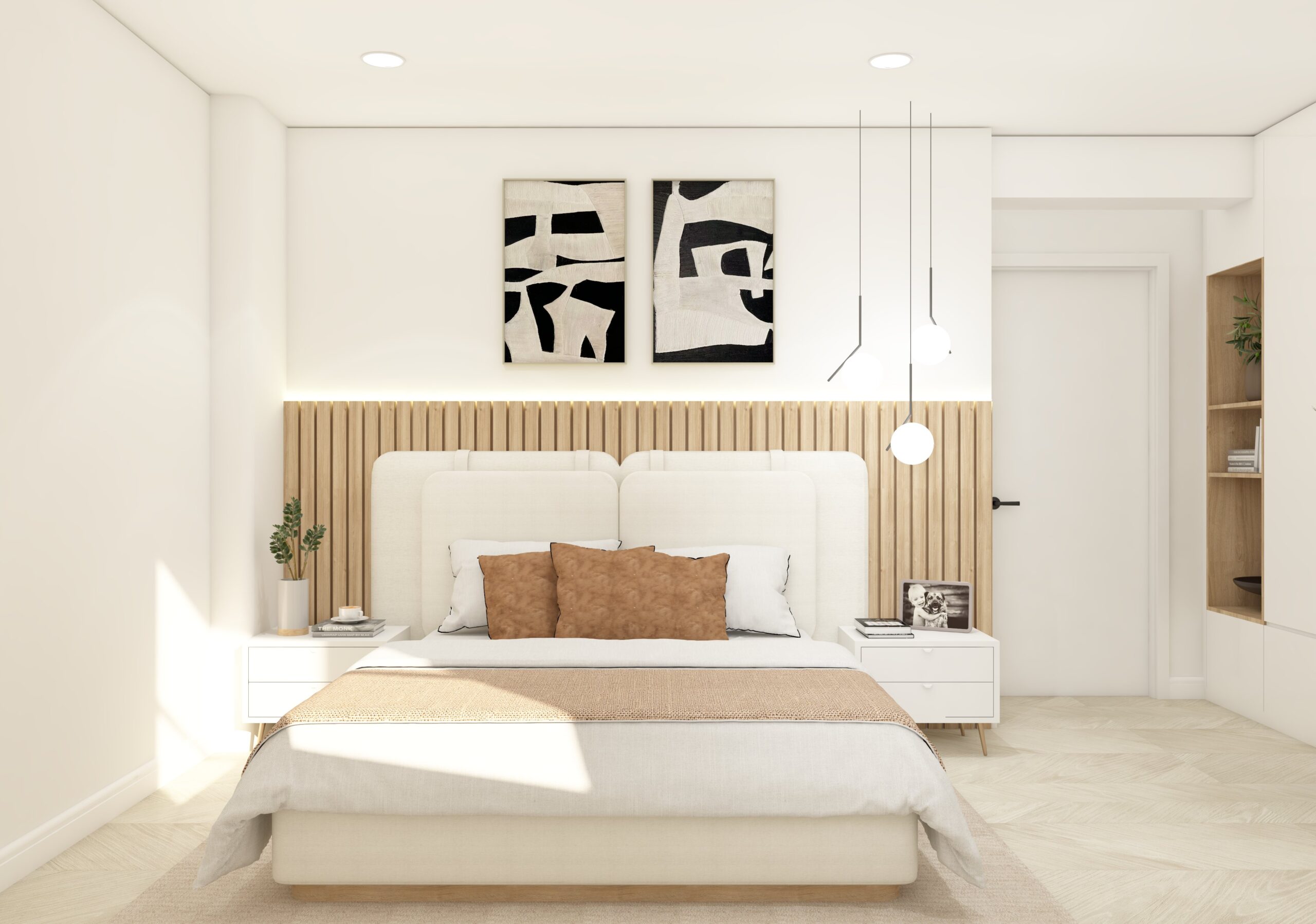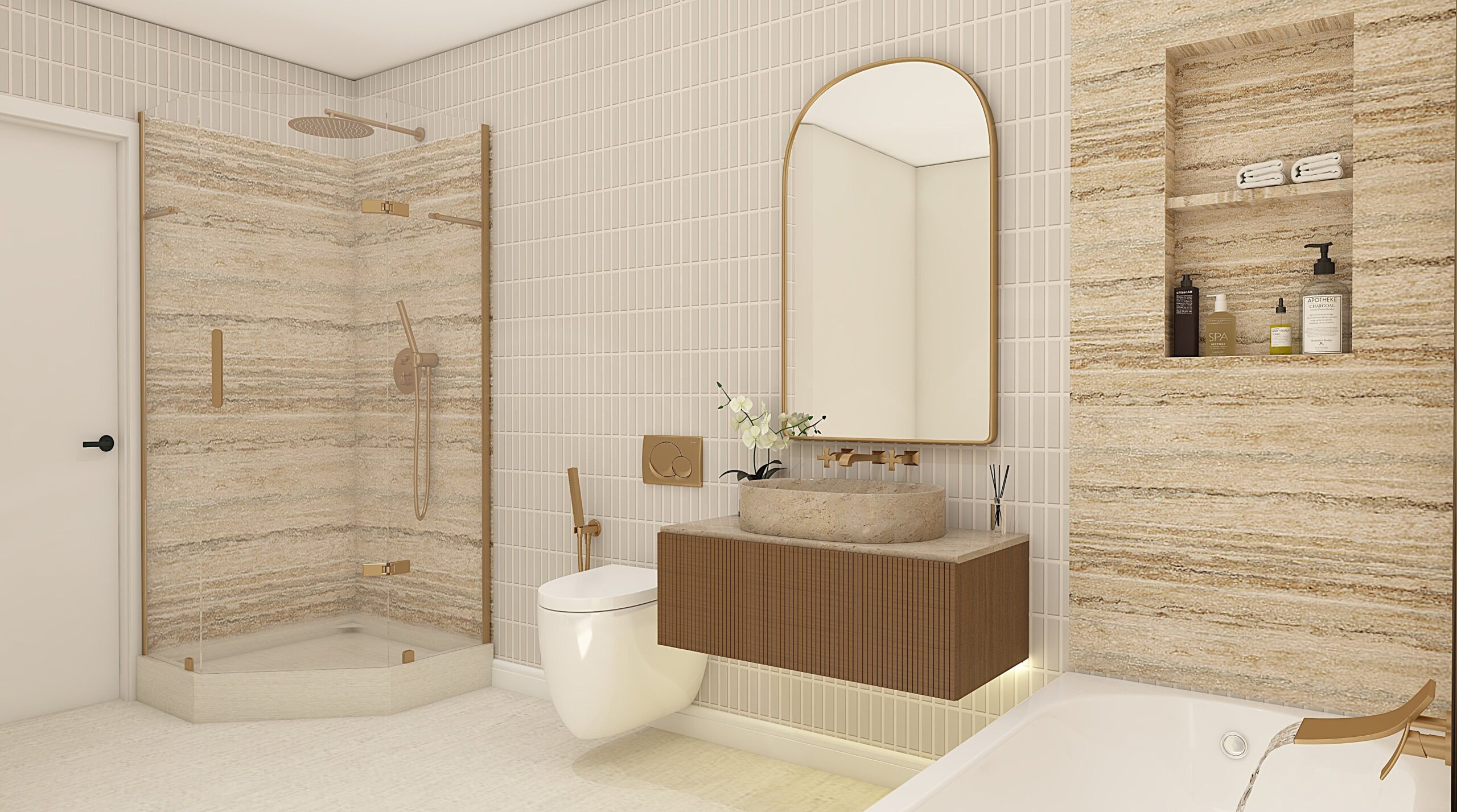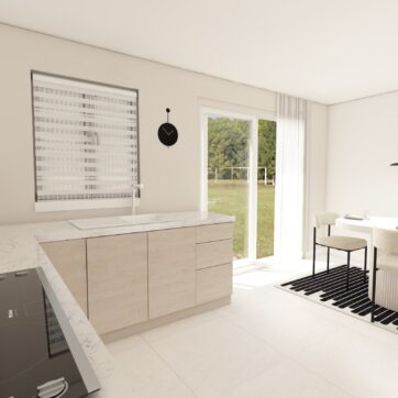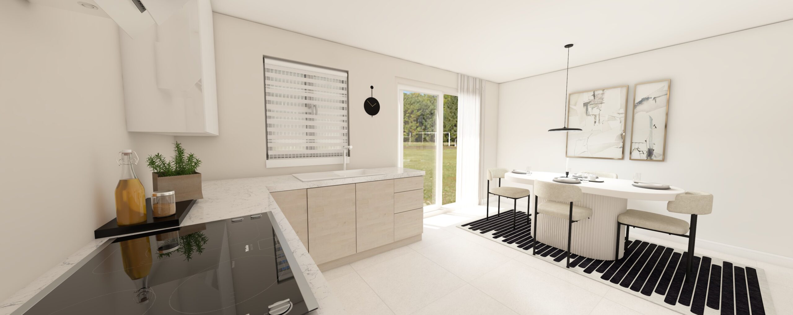 For the new-build homes, the focus was on crafting a youthful, high-end tone that felt both inviting and contemporary. Clean-lined kitchens, open layouts, and warm, neutral finishes set the stage for modern family living. Working around some architectural restrictions, the layouts were optimised to feel spacious, efficient, and market-ready.