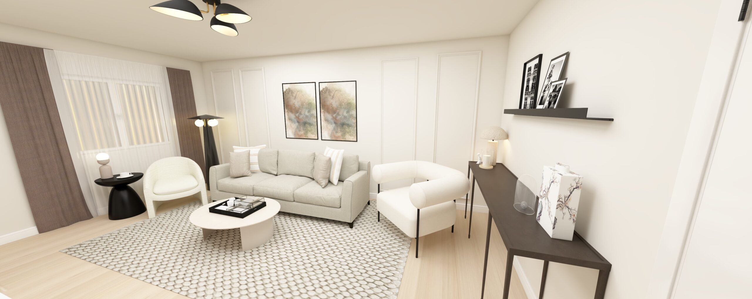 This multifaceted development involved the interior design and visualisation of two distinct property types: a set of new-build homes and a series of apartments within a beautifully preserved mill building. The aim was to produce renders and design concepts that would support off-plan sales, offering broad appeal while still capturing a sense of individuality and quality.